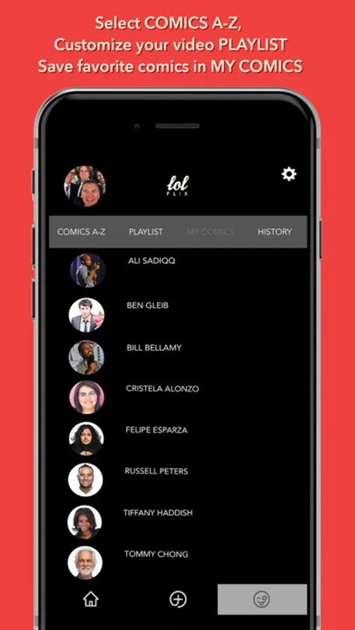 • Create a profile page and activate notifications to be reminded when your favorite comedians have new content added to their comics page or when new comedians are added to the lolflix app — and yes, there are hundreds more to come.
