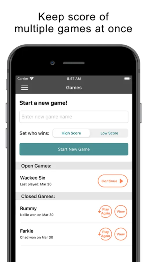 Love playing games, but hate keeping score? Keep score the easy way! With this app you'll beg to be the score-keeper. Don't let keeping score get in the way of playing the game.