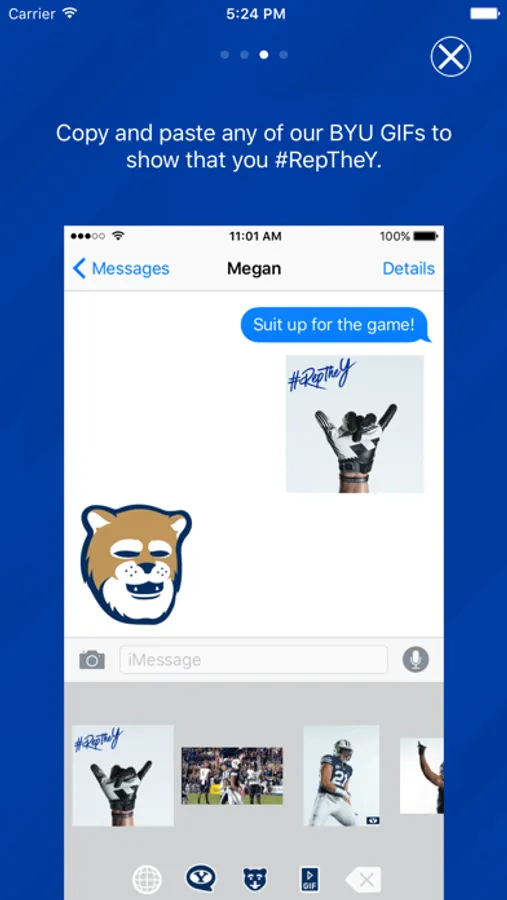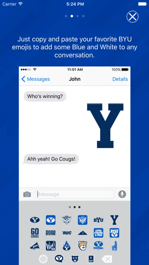 Combine custom BYU emojis, Cosmo stickers and GIFs to create hilarious and fun conversations. Show your pride and emotions with these custom icons and GIFs that are perfect way to show you are ROYAL, STRONG and TRUE. The Rep the Y Emoji Keyboard works with all of your favorite apps where image pasting is supported: iMessage, WhatsApp, twitter, Facebook Messenger, email and more!