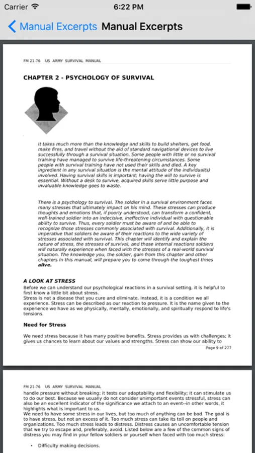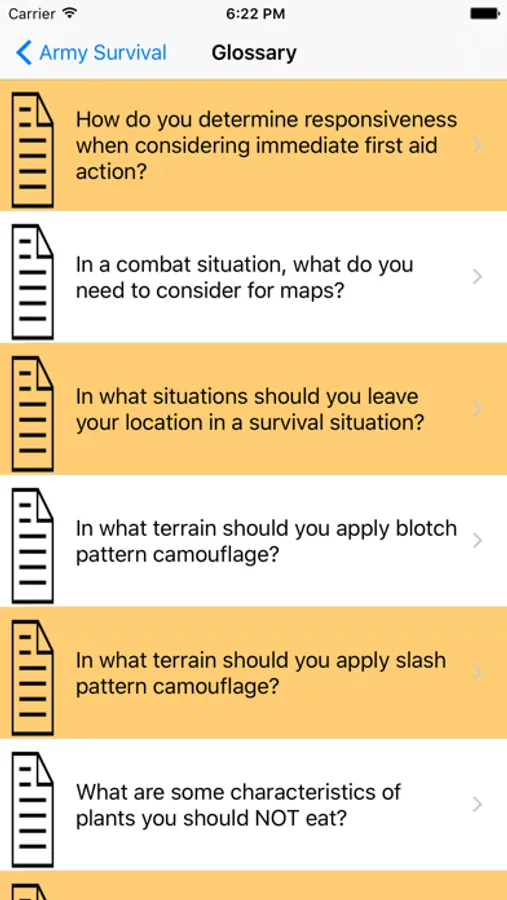 First and foremost this is the Army Survival Manual broke into 21 easy to reference pieces. 270+ pages total presented in this app. Second, we've got 30 flashcards that can be studied in a variety of ways to quiz yourself or your Soldiers during inspection or hurry-up-and-wait time.