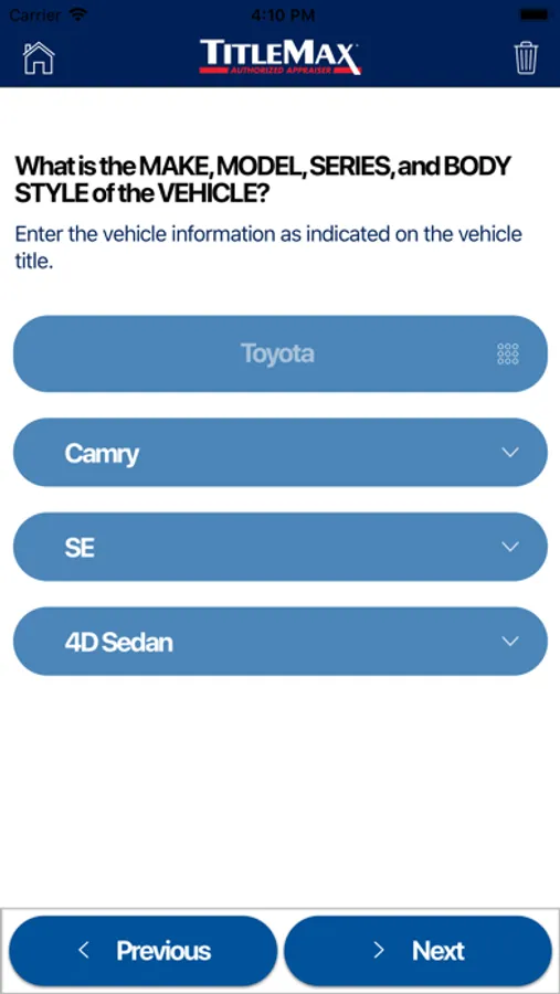 The TitleMax Authorized Appraiser App will help you fulfill your role as a valued part of the TitleMax process. After you’ve completed the application process to become an approved TitleMax Authorized Appraiser, download our free app to get started assessing vehicles. This easy-to-use tool allows you to evaluate a vehicle from the convenience of your established place of business. The App walks you through how to complete the vehicle appraisal process quickly and confidently.