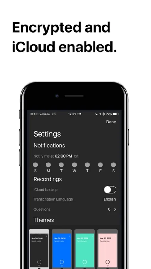 - Backed Up and Secure Forever: All recordings are backed up using iCloud Drive, encrypted by Apple. Nobody but you can access your recordings.