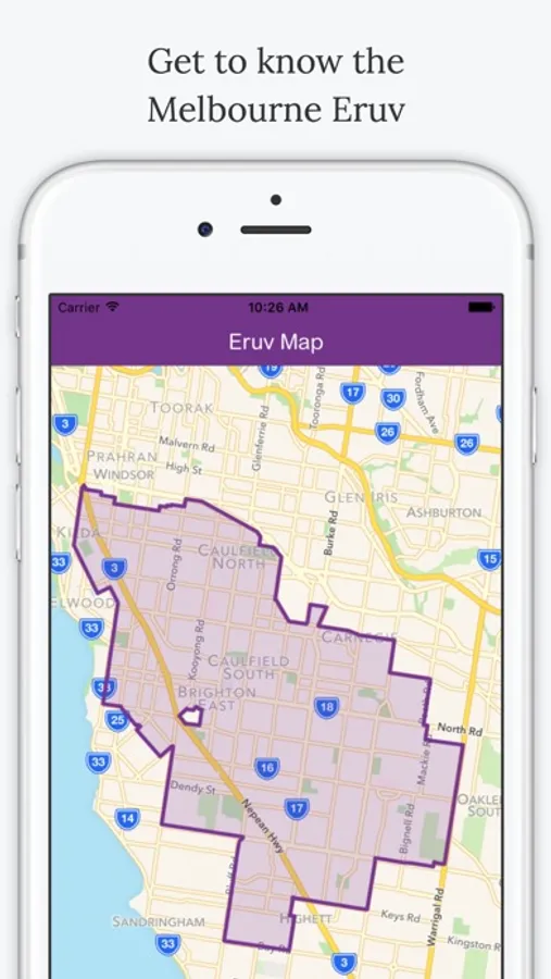 * features a map of the boundaries of the Melbourne Eruv, which allows users to zoom in to see more detail
