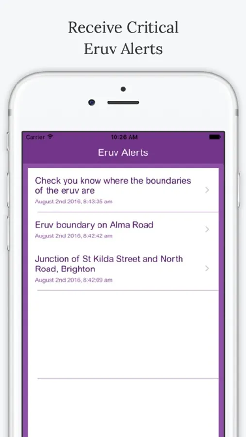 * enables the Melbourne Eruv Administrator to send eruv alerts to app users