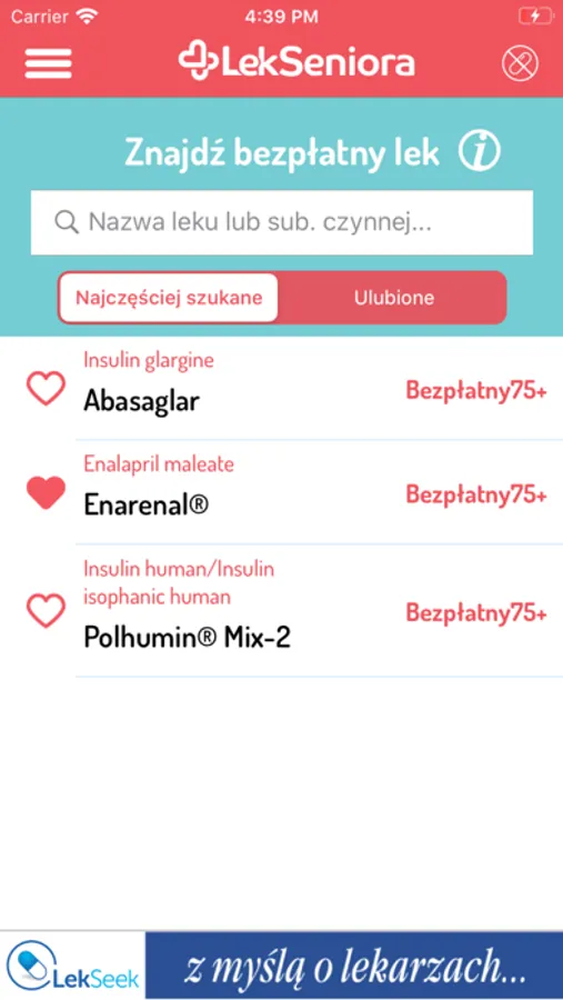 Aplikacja Lek Seniora umożliwia znalezienie informacji o bezpłatnych produktach leczniczych, objętych programem 75+. Adresowana jest do wszystkich, zainteresowanych tym projektem, zarówno do pacjentów i ich opiekunów, jak i lekarzy oraz farmaceutów.