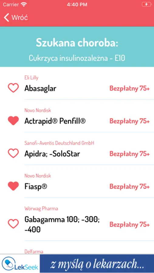 Lek oznaczony jako Bezpłatny 75+ przysługuje uprawnionym pacjentom we wskazaniach określonych w decyzji o objęciu refundacją. Jeżeli lek jest refundowany we wszystkich zarejestrowanych wskazaniach, to jest w nich wszystkich bezpłatny dla pacjenta. Jeżeli natomiast lek jest refundowany w określonych wskazaniach, to jest bezpłatny dla seniorów tylko i wyłącznie w tych właśnie wskazaniach.