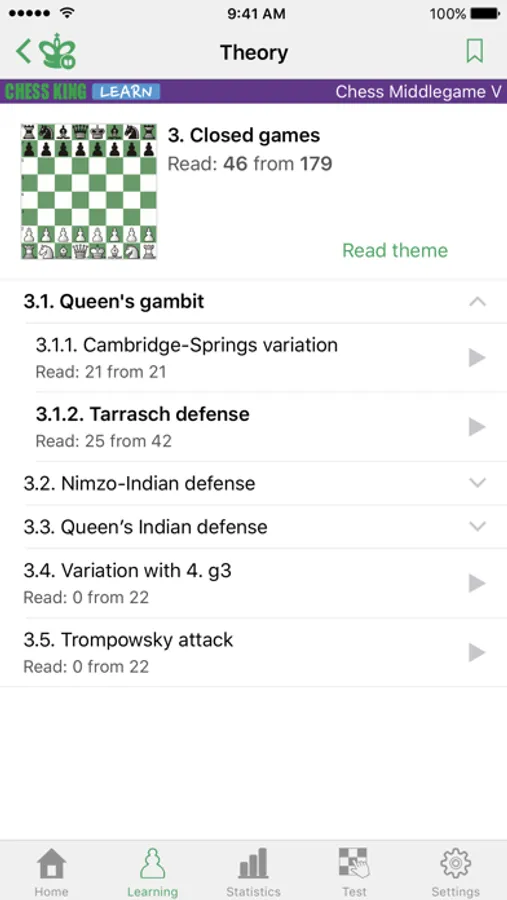 The program also contains a theoretical section, which explains the methods of the game in a certain stage of the game, based on actual examples. The theory is presented in an interactive way, which means you can not only read the text of the lessons, but also to make moves on the board and work out unclear moves on the board.