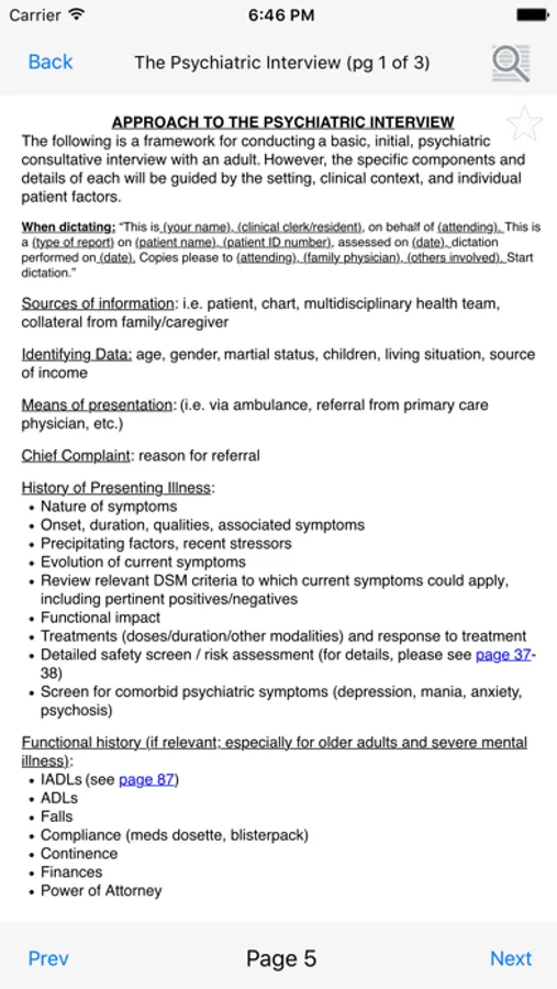 It is an easy-to-use tool designed to be used in the clinical setting containing evidence-supported approaches to psychiatric emergencies, substance intoxication and withdrawal, approaches to various psychiatric symptoms and special populations, non-pharmacological management and medication charts containing core content most often looked up by mental health professionals.