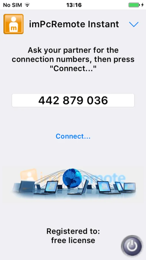Using the Instant version you can perform operations on a remote computer while all you need is internet connection and a telephone. The connection process is as simple as possible. The remote user downloads and runs imPcRemote Instant User which generates a 9-digit ID. Then, this ID should be shared with you on the telephone while you start imPcRemote Instant Admin. Entering the given ID into the corresponding field the connection is made. So you can start working with the remote computer right away.