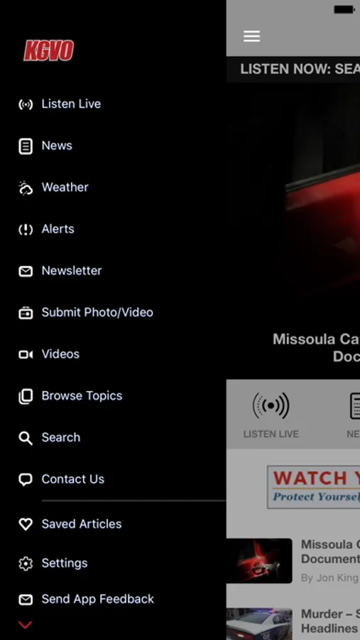 Get the latest news and information, weather coverage and traffic updates in the Missoula area with the KGVO app! Listen to the station live and interact with the hosts – you can direct message and call the show directly from the app. Receive alerts about breaking news, contests, and more before anyone else. Save articles and viral stories for reading later, and share on Facebook and Twitter.
