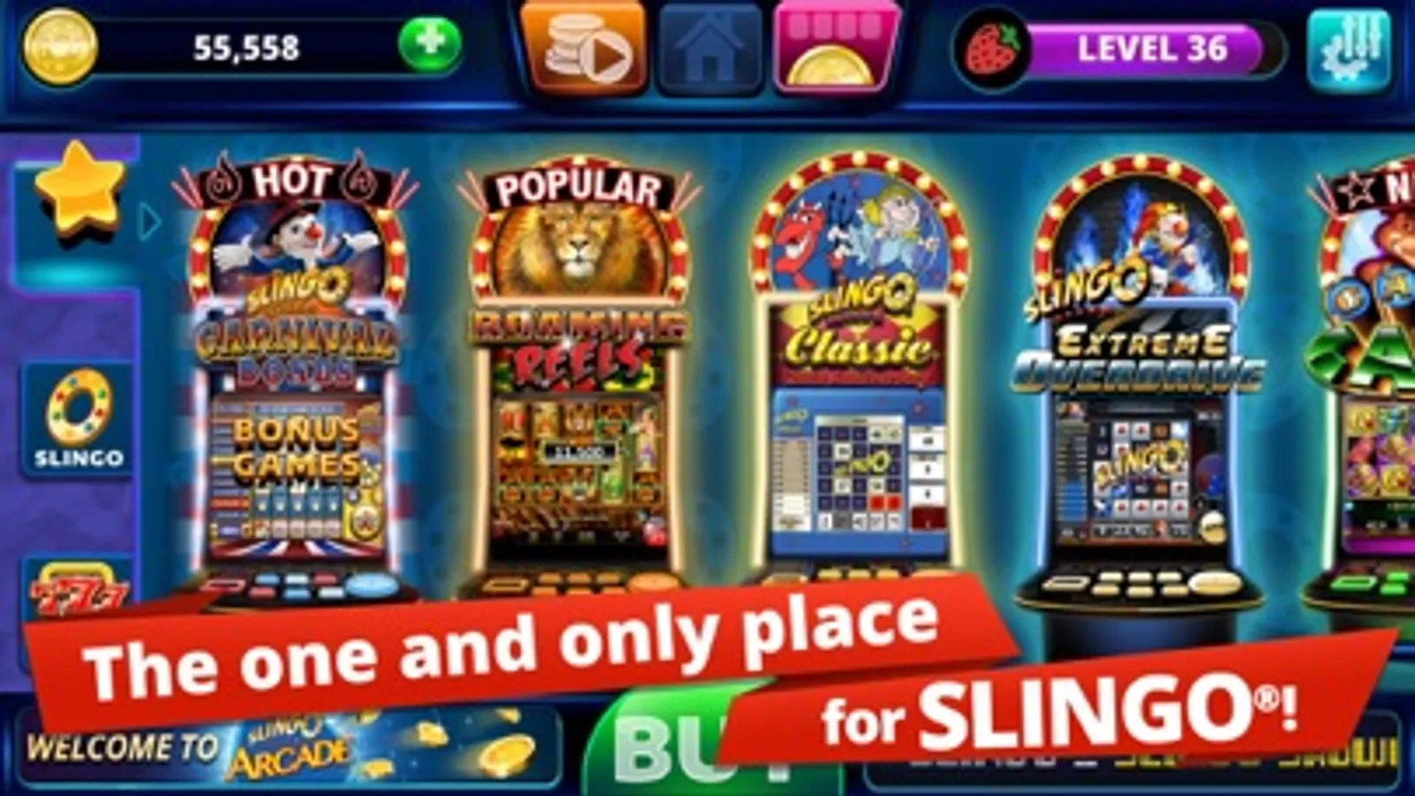 Play the best Slingo (Slots + Bingo) and slot games all in one free Casino with Slingo Arcade. New games being added every week, you'll never get bored at this casino. Collect your 1,500 credit Welcome Bonus and play your favorite Vegas Slots and Bingo games!