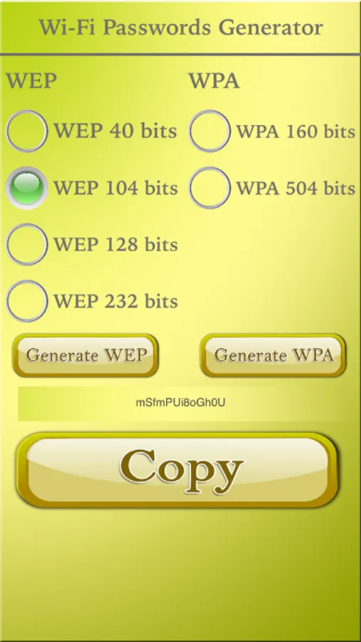 Using this app you can generate secure passwords for WEP and WAP networks.