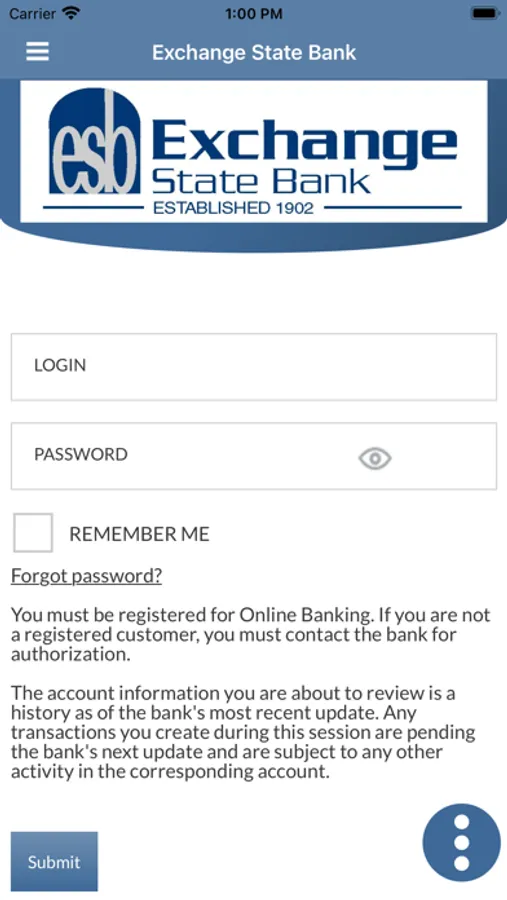 Exchange State Bank’s mobile banking app lets you view your balances and transaction history, as well as perform funds transfers and loan payments between accounts within Exchange State Bank. You must be a registered internet banking customer to utilize this app.
