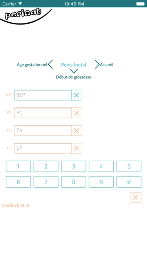 Les formules de calcul ont été choisies selon les recommandations du Collège Francais d'Echographie Foetale (CFEF).