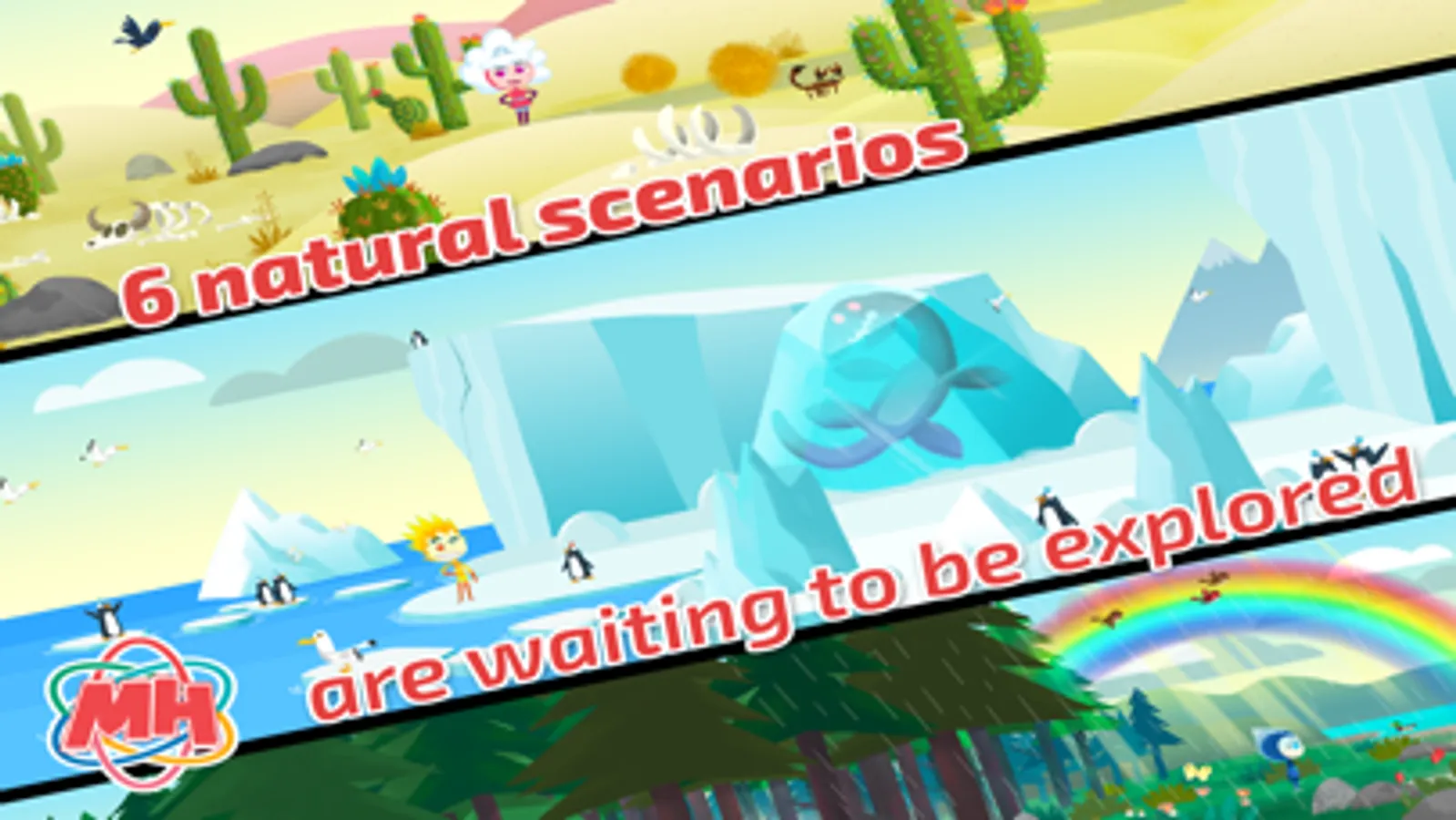 Help the MeteoHeroes while they train and discover, under Tempus's watchful gaze, how to use their powers in beautiful, natural environments ranging from polar ices to burning deserts. Together you will have to work out different challenges, removing obstacles along the way and at the same time learning how Nature reacts to specific weather phenomena.