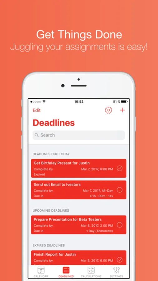 - See the days remaining until the due date and a live countdown for current day Deadlines