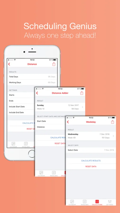 DayCalc is an innovative app that extends the capabilities of your iPhone's built-in calendar app. DayCalc aims to be your main hub for viewing upcoming calendar events. Additionally DayCalc performs various date calculations (such as distance between two dates) and let's you save deadlines directly within the app. DayCalc is improved constantly and will be updated frequently!
