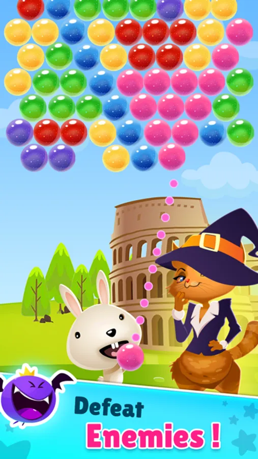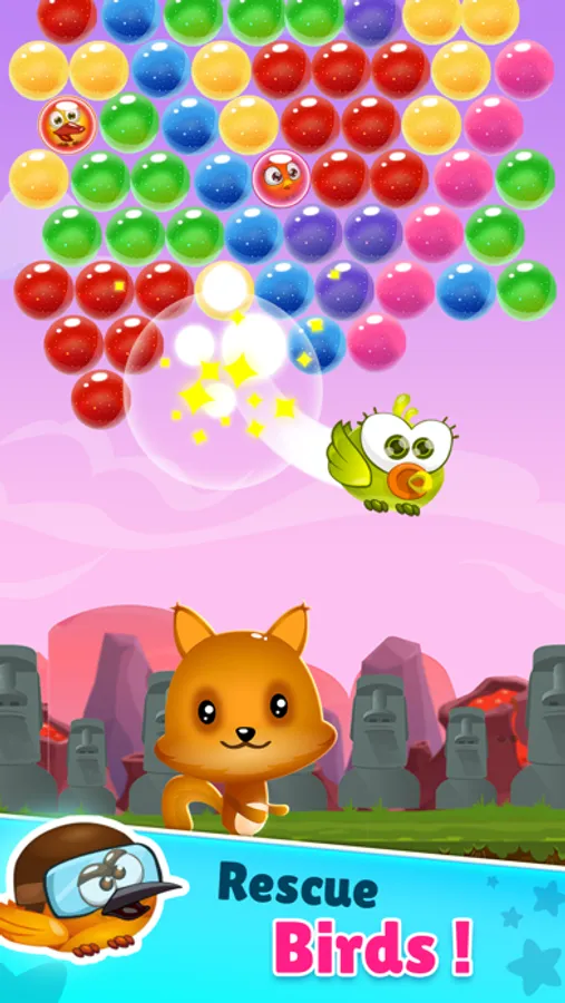 The evil Witch has captured cute little birds and only you along with your friends Fox, Bunny and Kitty can rescue them and defeat the Witch. Use your skills to burst endless bubbles and be a part of the bubble shooting adventure.