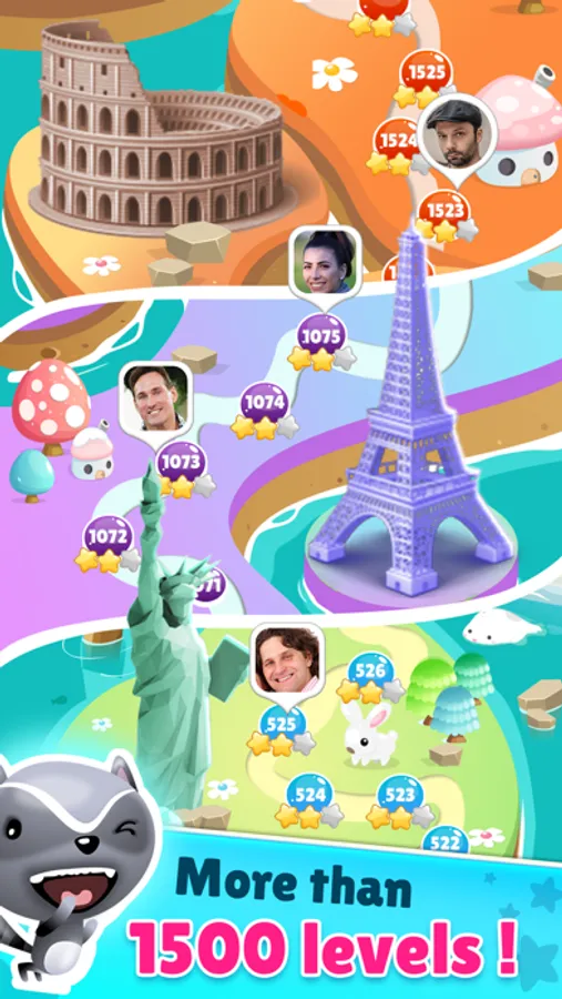 Travel the world and get to see epic wonders like Statue of Liberty, Opera House, Colosseum, Eiffel Tower and more. Make your adventure even better by connecting to Facebook and playing with your friends to compare high scores in over 1500 free levels!