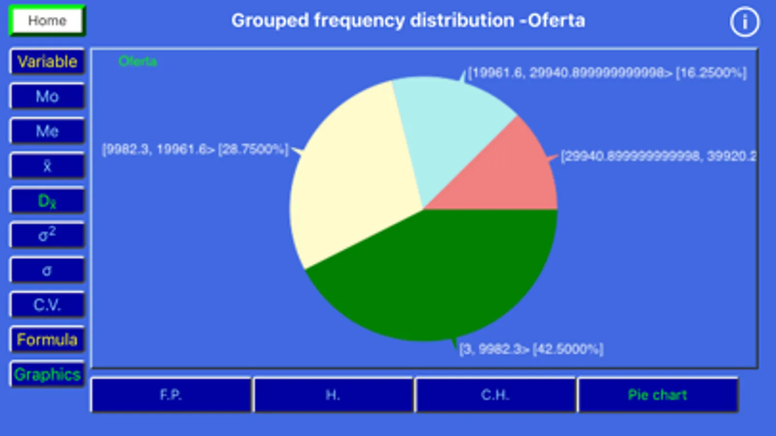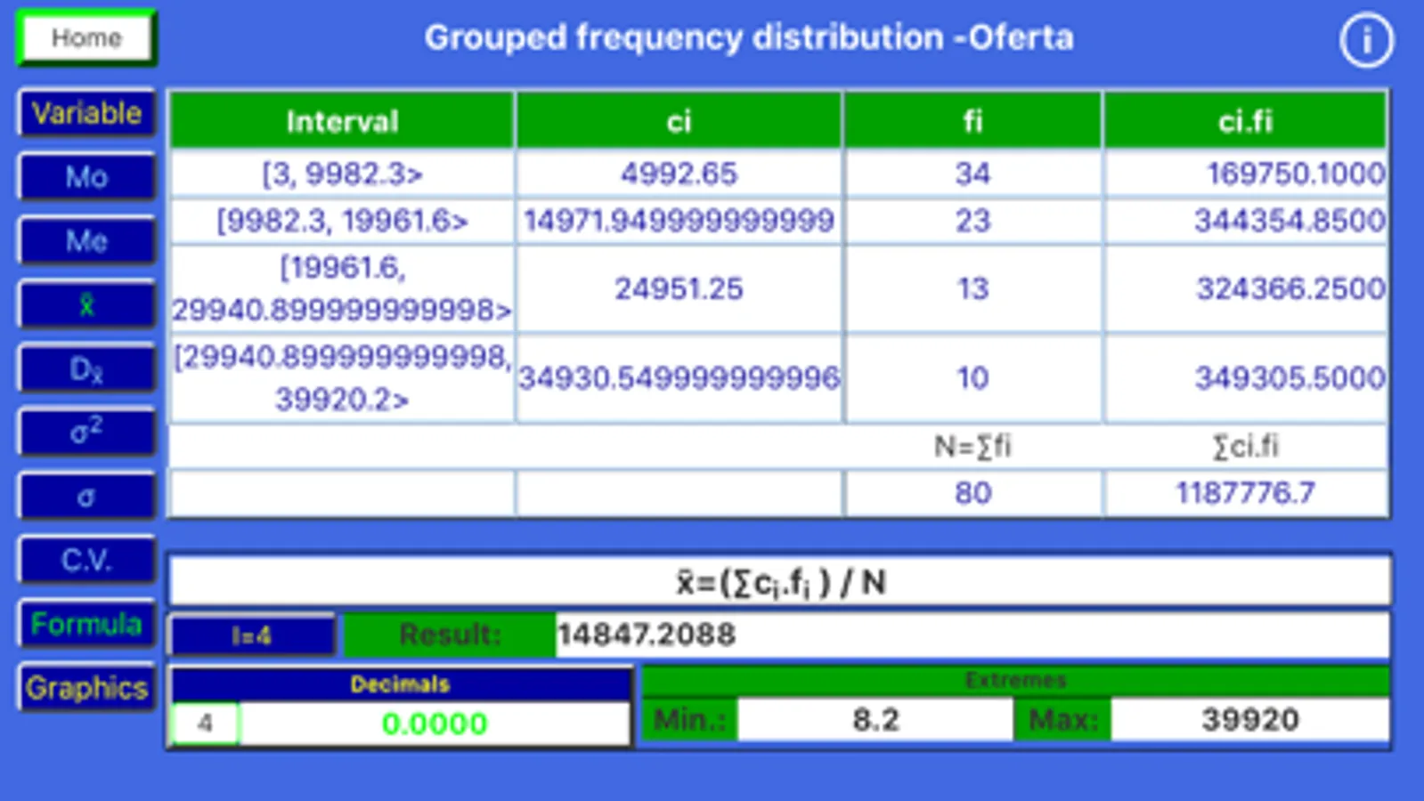 Grouped Frequency Distribution - The same opportunities as in the case of the Frequency Table (Discrete Data) are presented, except that the number of intervals to have is further required.