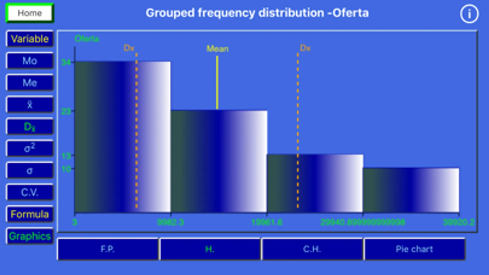 Statistics - It allows the display of basic statistics, as well as the behavior of selected variables on a chart.