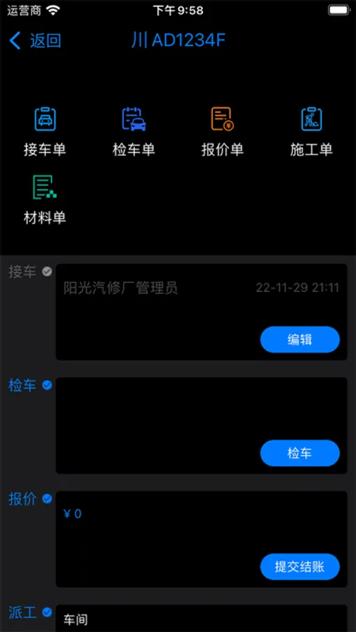 “阳光维修”APP方便有效的通过包括音频,视频,照片,gps等信息贯穿整个维修作业全过程的信息记录,信息共享,协作,并最终向车主(消费者)出具符合国家相关规范的机动车维修出厂竣工合格证以及和国家汽车电子健康档案平台进行数据互通。
