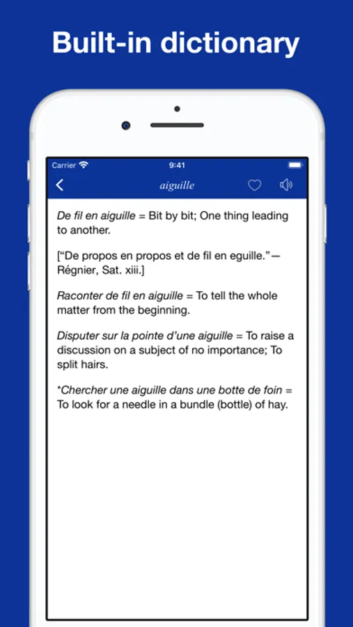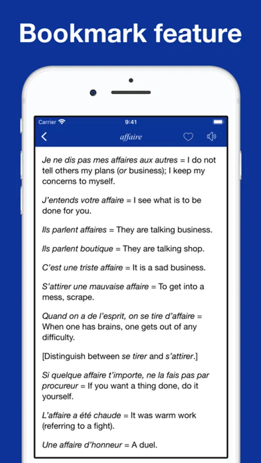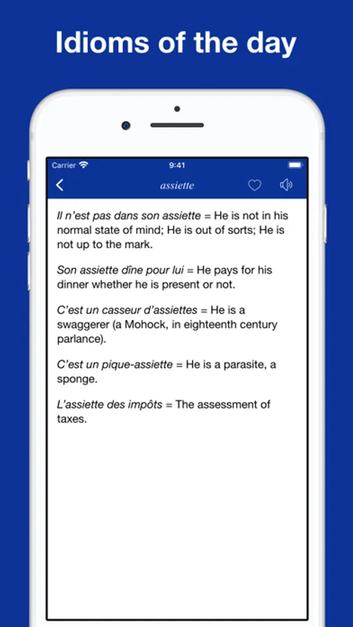 Understanding and using idiomatic expressions is vital in achieving fluency in a language. English-speaking students of French will find this application invaluable in improving their conversational skills.