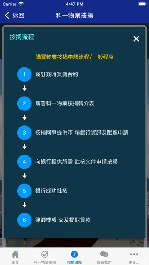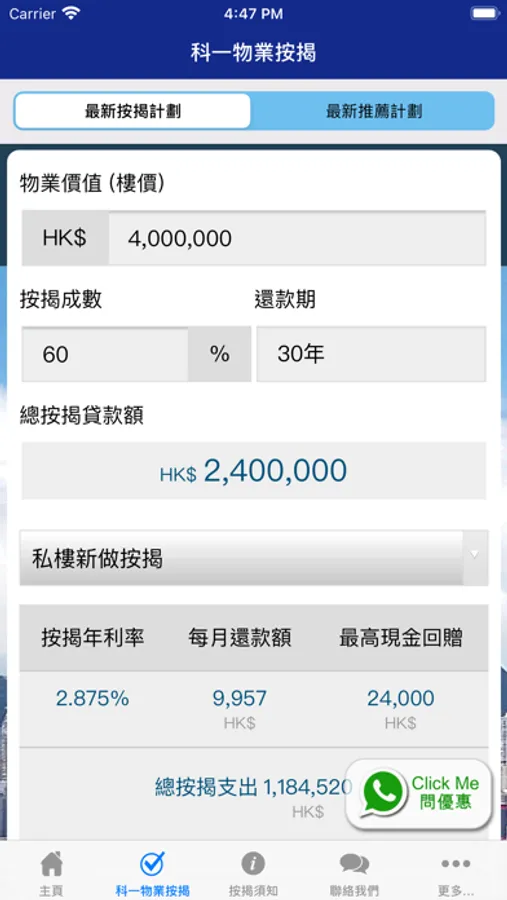 透過科一物業按揭轉介,您可同時掌握多家銀行及財務機構的按揭計劃及最新優惠詳情。無論新按、轉按或加按,甚至私人貸款,科一會根據您的理財需要,提供詳盡的分析及評估,助您在瞬息萬變的按揭市場,輕鬆地挑選最合適的按揭計劃,服務範圍包括一、二手住宅、工商舖物業及車位等。