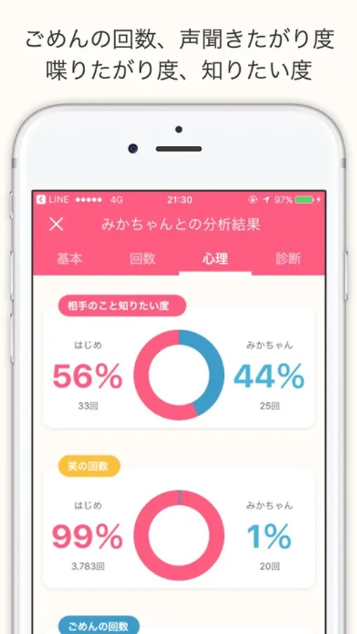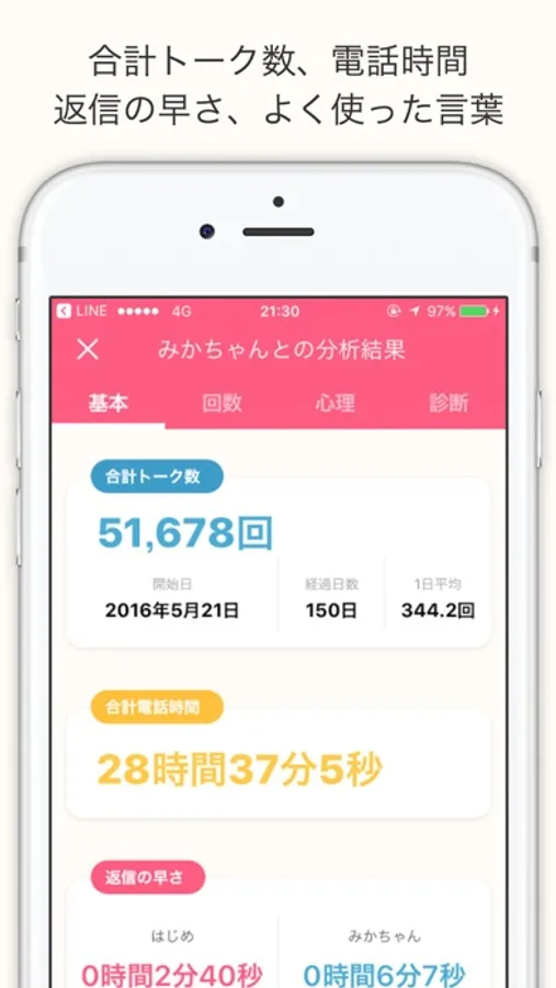 LINEを送った回数や今までの合計電話時間、誰の返信が早い、などなど!!
