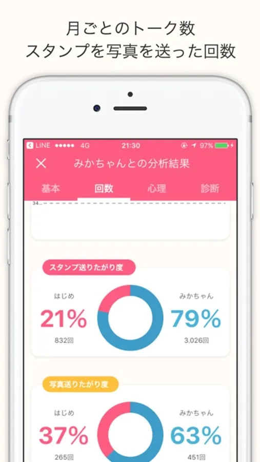 チャッピーではLINEのデータに基づいた結果を客観的に表示します。