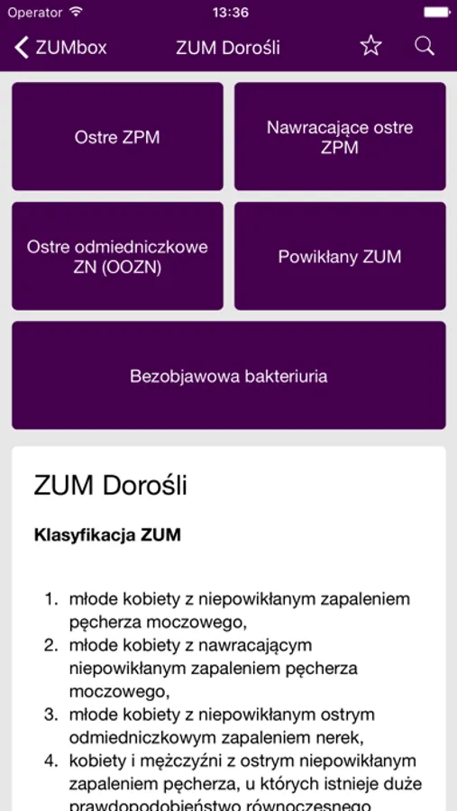 ZUMbox to aplikacja z serii 3Clicks, przeznaczona dla lekarzy. Platforma ZUMbox oferuje szybki i intuicyjny dostęp do wiedzy na temat diagnostyki, leczenia oraz algorytmów postępowania w zakażeniach układu moczowego u dzieci i dorosłych.