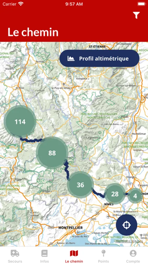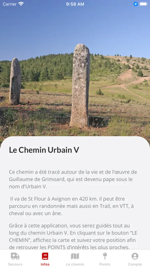 Cette application gratuite permet de se laisser guider sur le chemin urbain V qui est un GR allant de Nasbinals à Avignon.