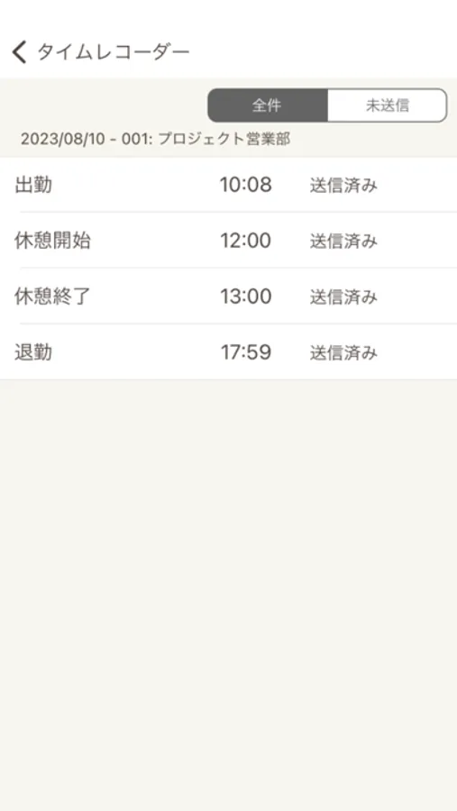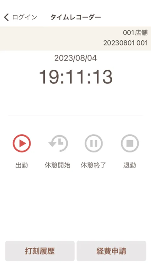 従業員の出勤・退勤・休憩(開始・終了)のアプリ上での打刻