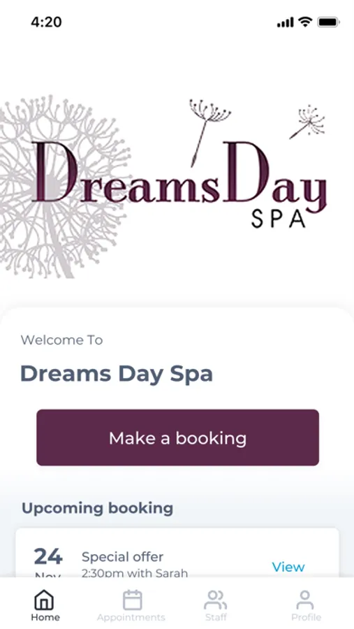 The Dreams Day Spa app makes booking your appointments and managing your loyalty points even easier. You're just a few taps away from feeling good and looking great!