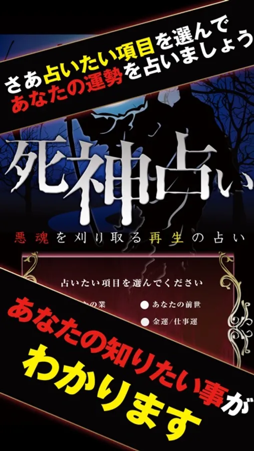 この世の真実と未来の運勢を結びつける占い『死神占い』にようこそ。