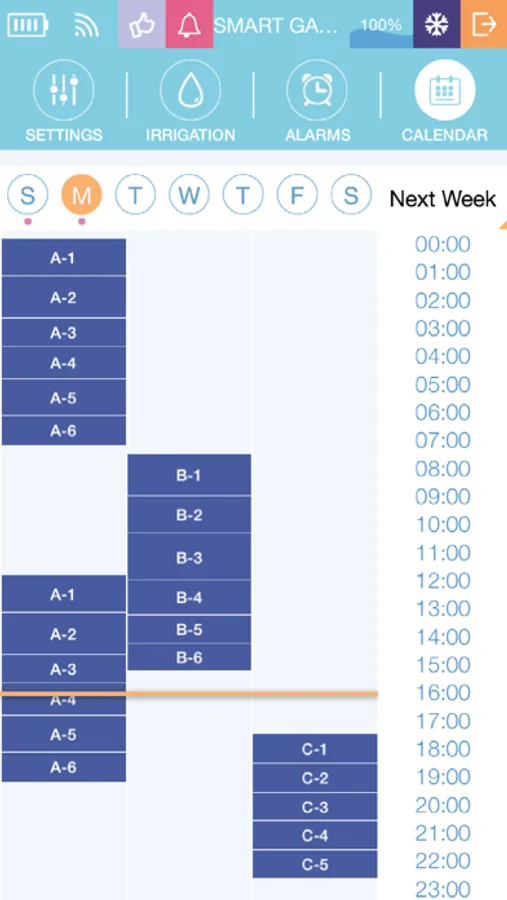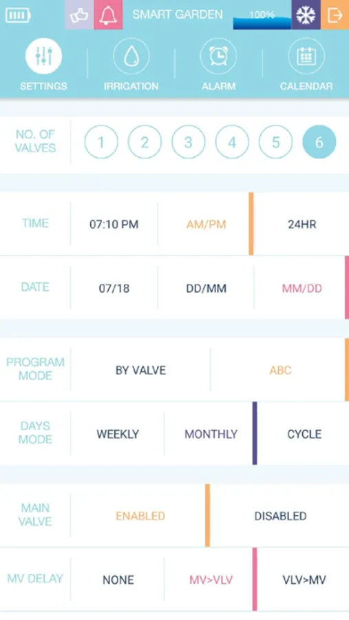 Garden Wiz offers professional solution for gardening irrigation control, innovative styling, hardware and software new technology design, flexibility, extensions, professional features, user friendly device, reliability and high level technical support. Include: Network Settings for full irrigation area suitability. Two programs mode: Per valve or Per Programs (A, B and C). Four start time with unique water dosage, Daily, Weekly or Monthly cycle, Alarms list, Calendar irrigation presentation. Handle up to six irrigation valves. In addition, special output for Main valve. Three special inputs: Flow switch, Rain sensor and panic button. Low energy consumption.