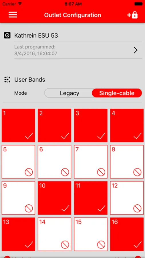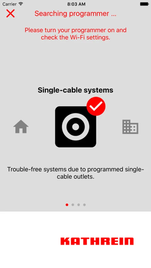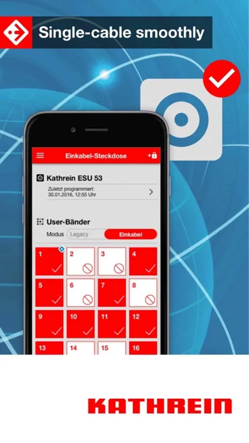 Your professional tool to configure single-cable outlets for satellite systems. The app Kathrein ESU together with the required programmer¹ gives you straight access to compatible single-cable outlets² of a single-cable distribution system.