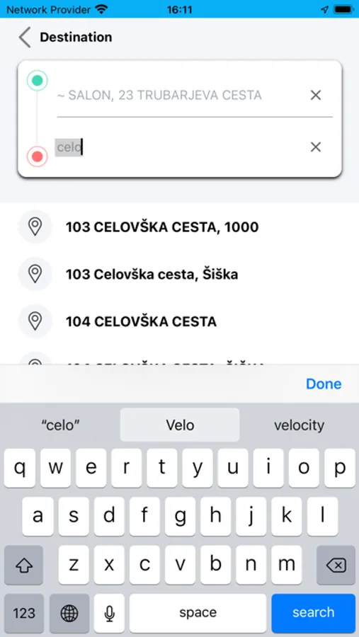 - aplikacija samodejno pridobi vašo lokacijo s pomočjo GPS sprejemnika v vašem telefonu (naslov lahko po potrebi tudi spremenite)
