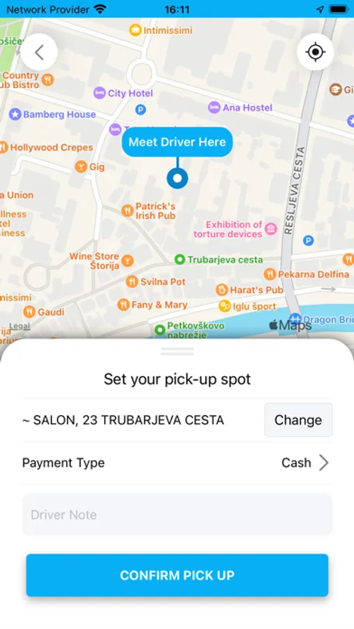 - na zemljevidu spremljajte svoj taxi in opazujte kako se približuje vaši lokaciji