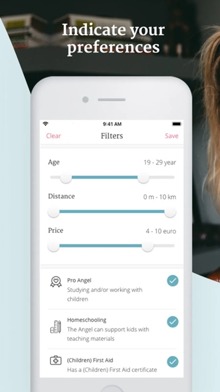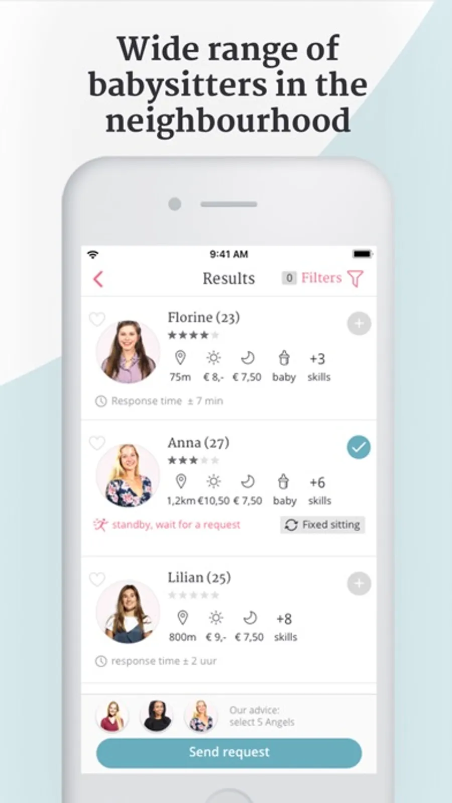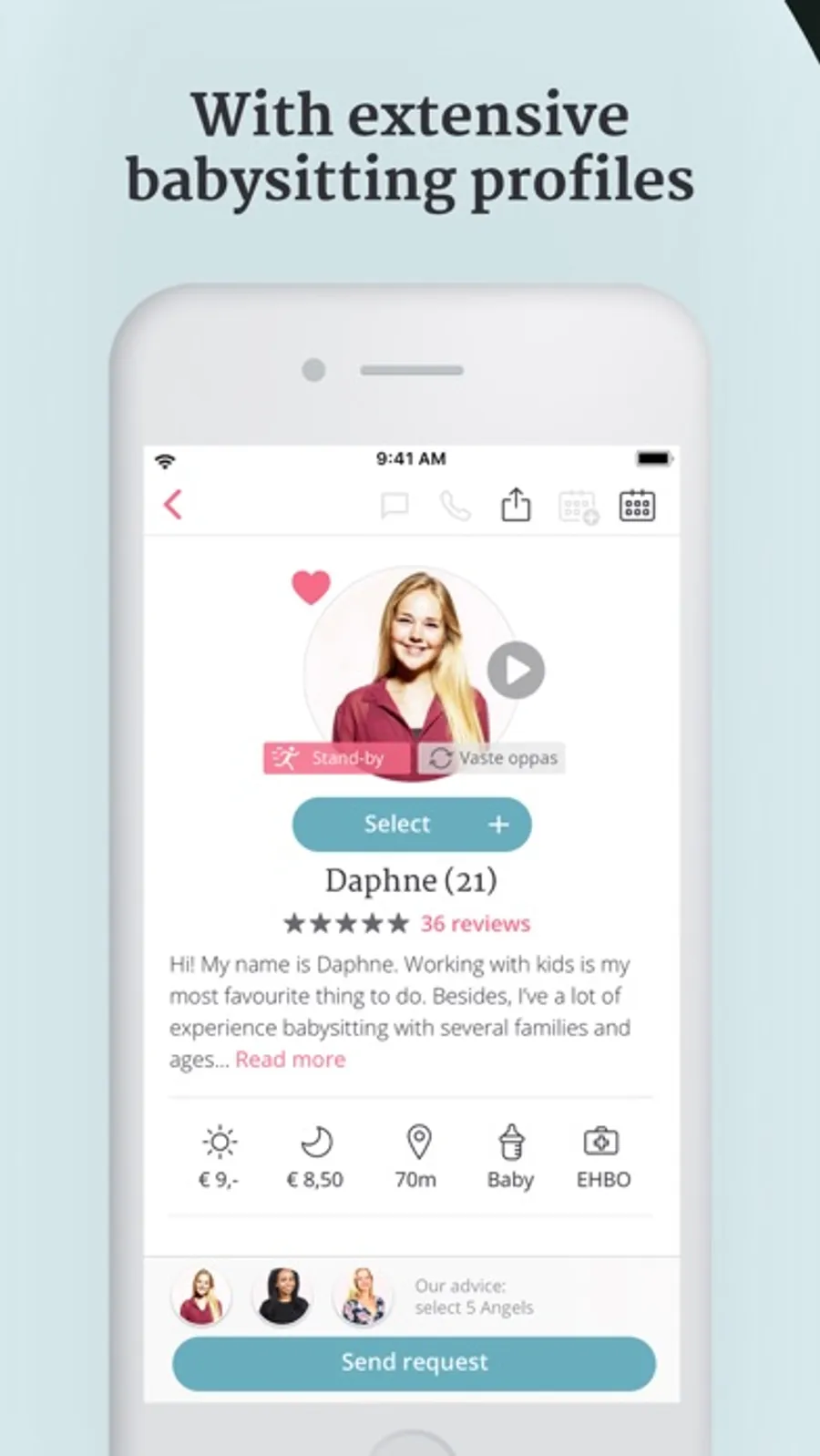 Every Babysitting Angel has a complete profile where you can find all information and read more about his or her babysitting experience. For example, read more about their experiences with babies, if they are in possession of a Child First Aid certificate or if they like to cook for your kids during after-school hours.