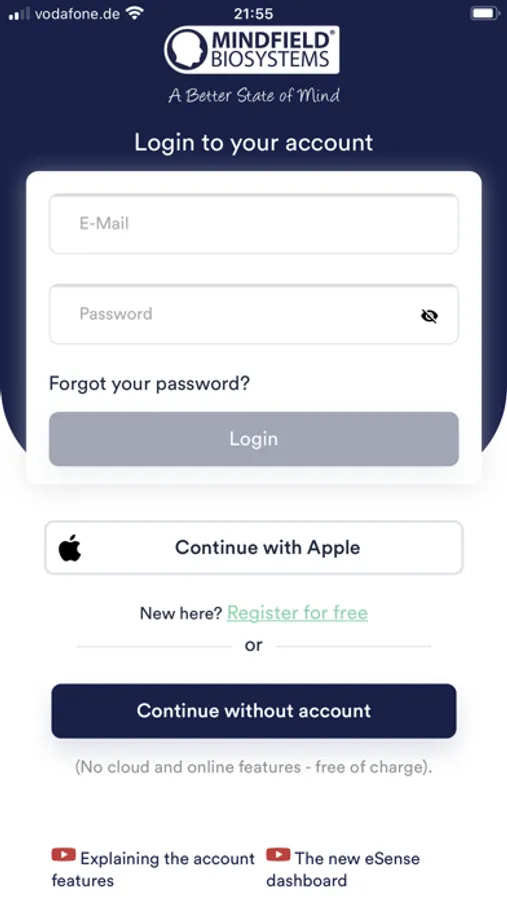 - Optional (!) cloud functions such as backup & synchronization of measurements & procedures, free eSense account and download of additional, free training programs.