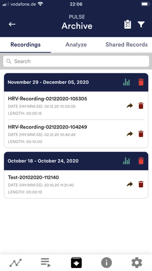- you can save unlimited number of sessions on your device in a new session archive. Every session can be reviewed and exported later on.