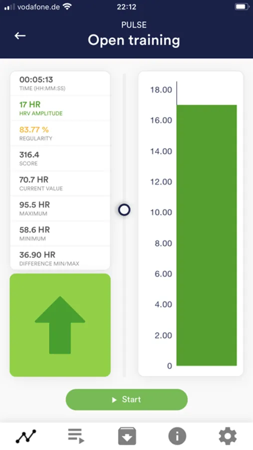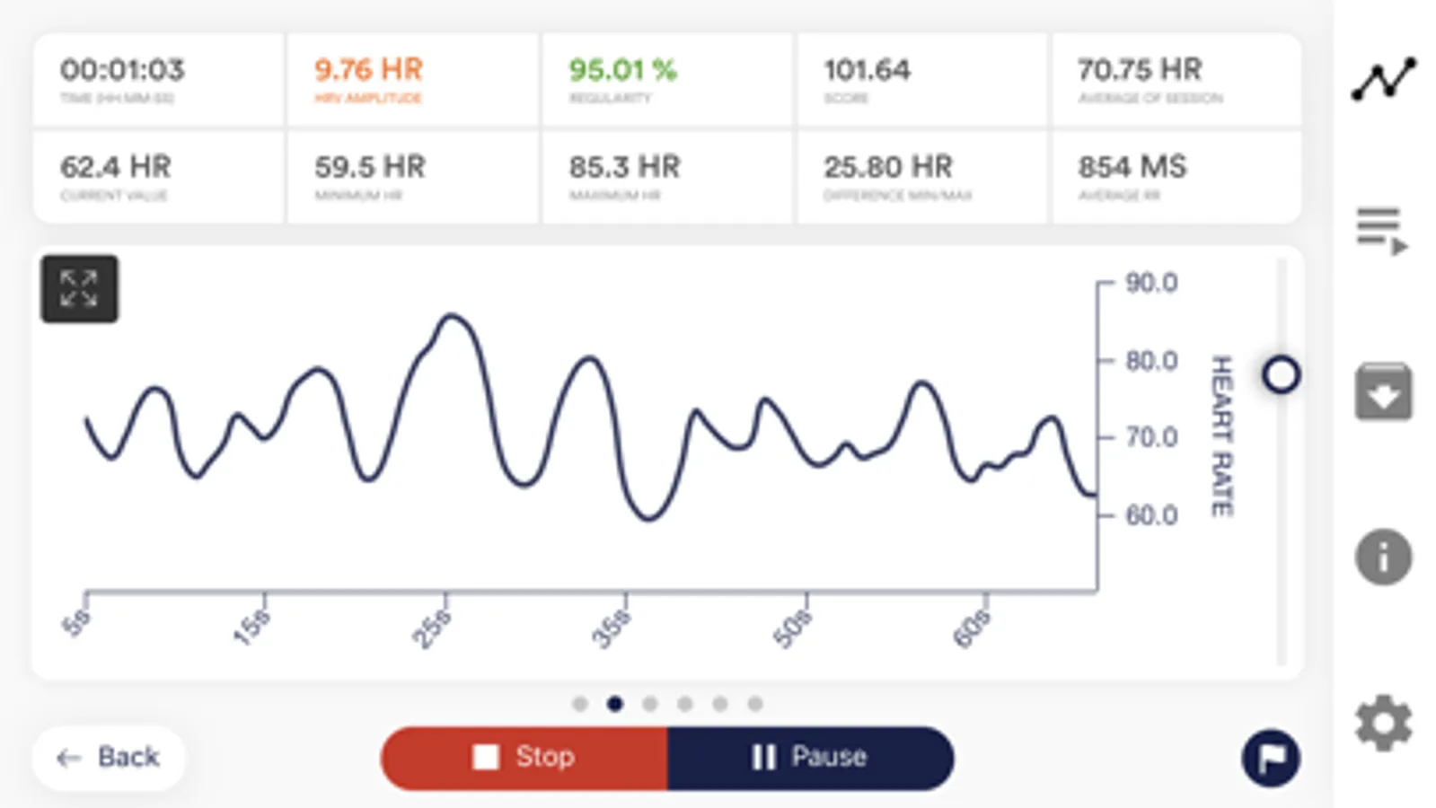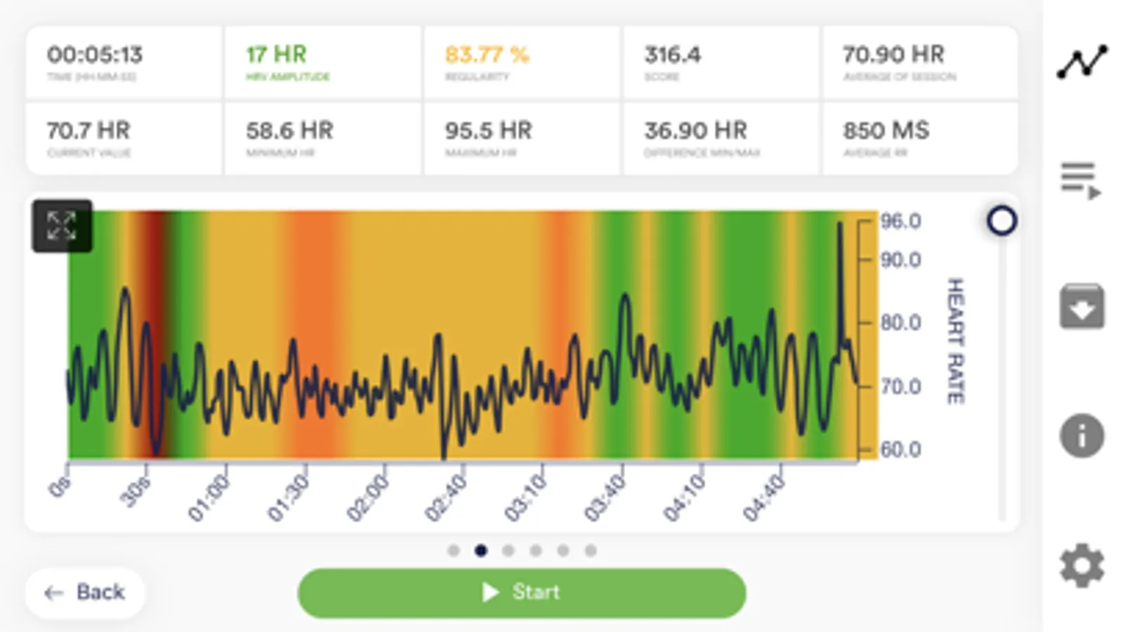 - Procedures: This feature incorporates training programs like guided relaxation, a stress test, defined biofeedback training, etc. into the app. Two demos are included, you can create as many procedures of your own, as you want.