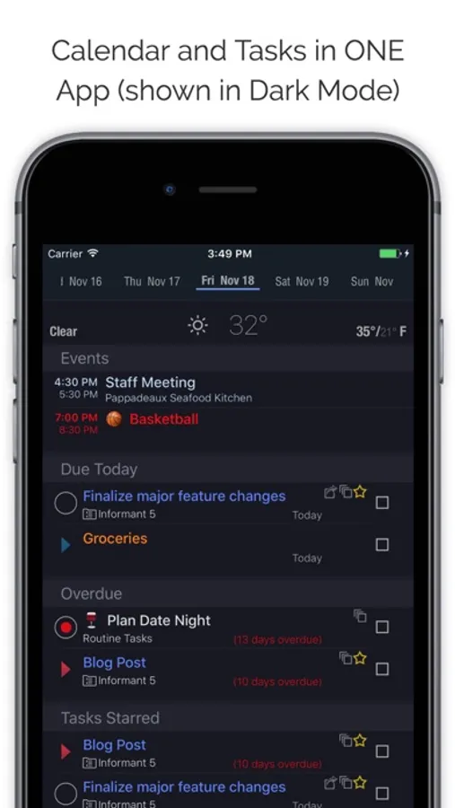 •Sync Options Include: Google Calendar & Tasks, Toodledo, and Informant Sync