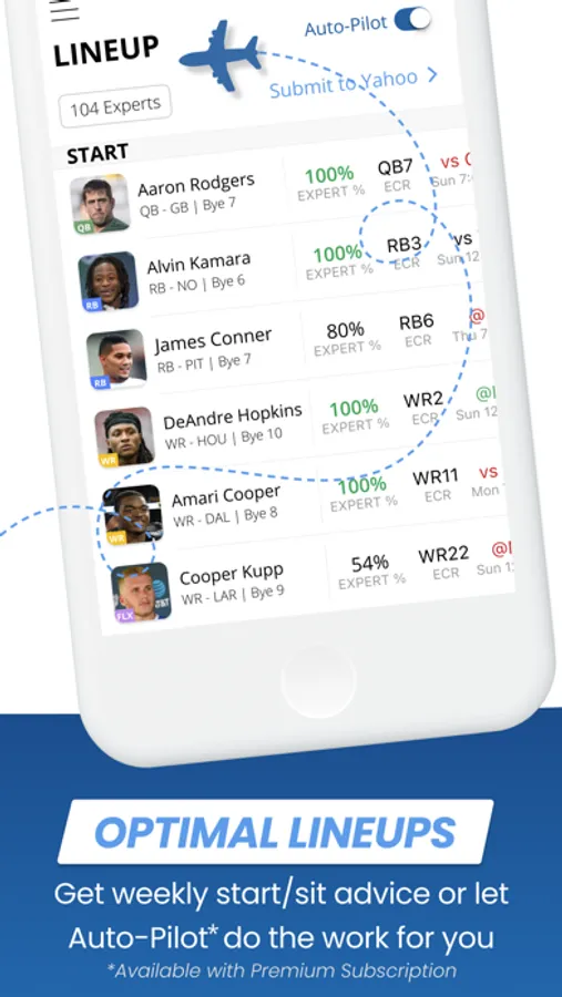 See what your optimal lineup is each week based on the most accurate experts.