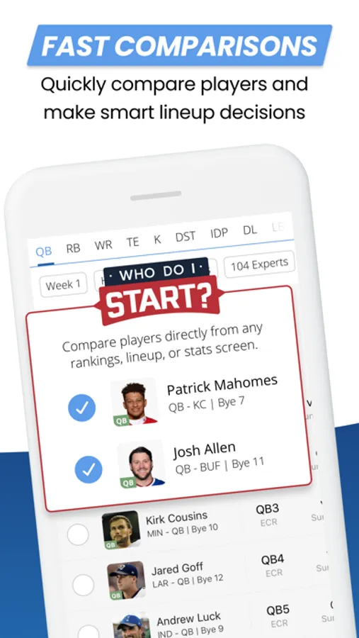 Easily compare players side-by-side for smart lineup decisions.