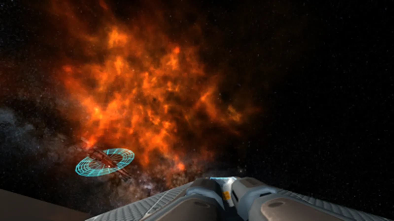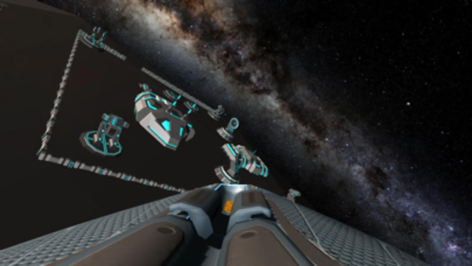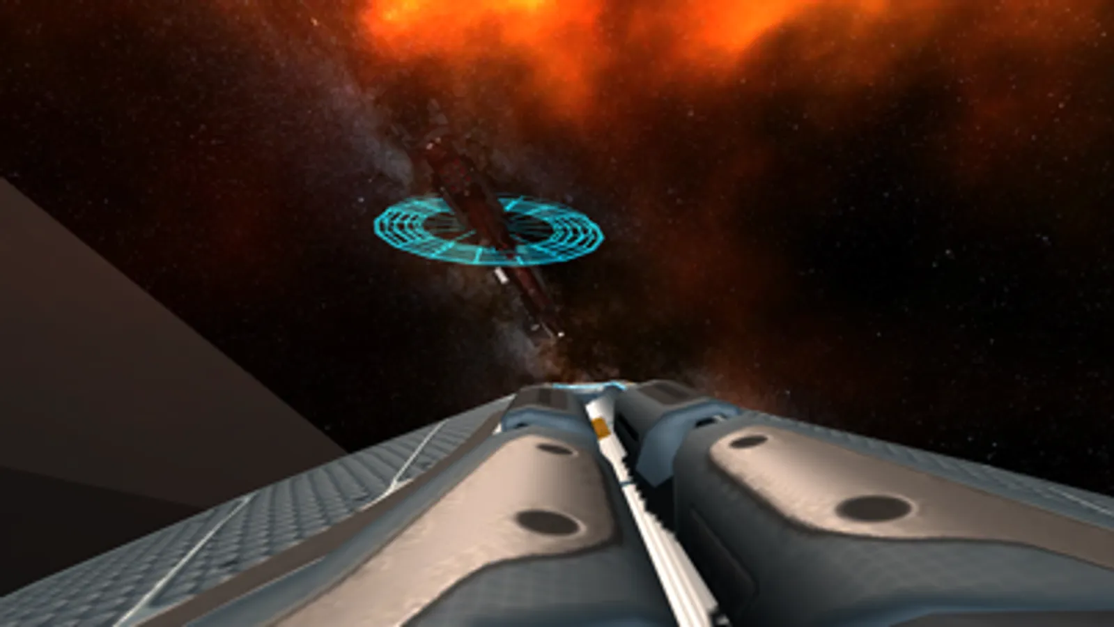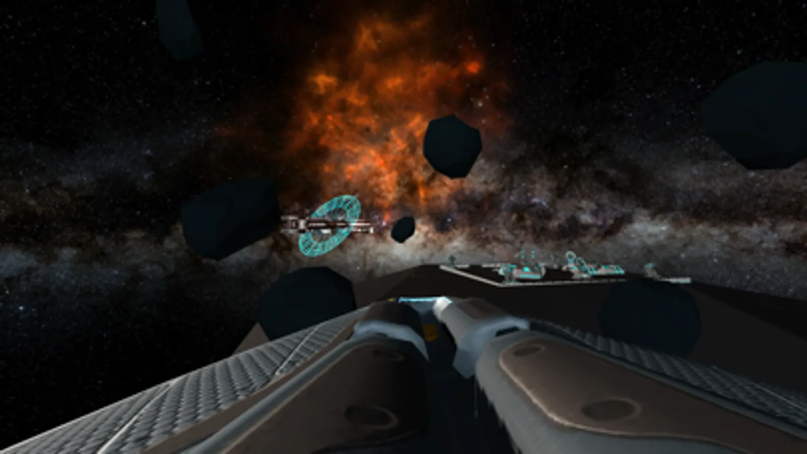 This game is for 3D mobile virtual reality headsets. Pass the asteroid field and meet up with the base destroyer dreadnought. Watch for incoming enemy fighters and don't get lost in the orbiting nebula. To MOVE just turn your headset in the direction you want to go and maneuver through obstacles to get to the checkpoint. To FIRE use any input to activate shooting from side lasers. Press the X option in the top left corner to play in normal mode or the VR onscreen icon the play in VR mode.