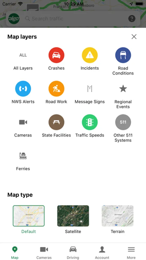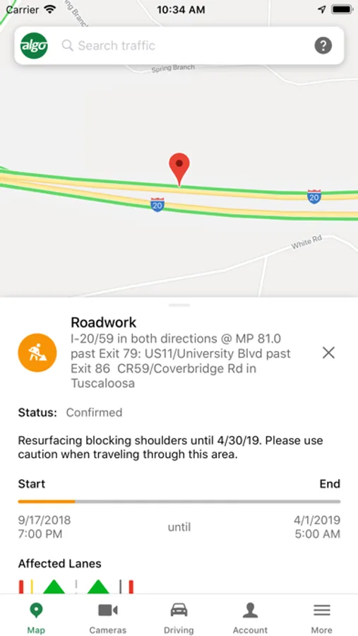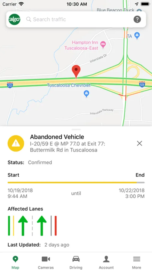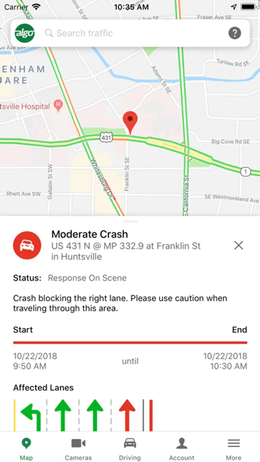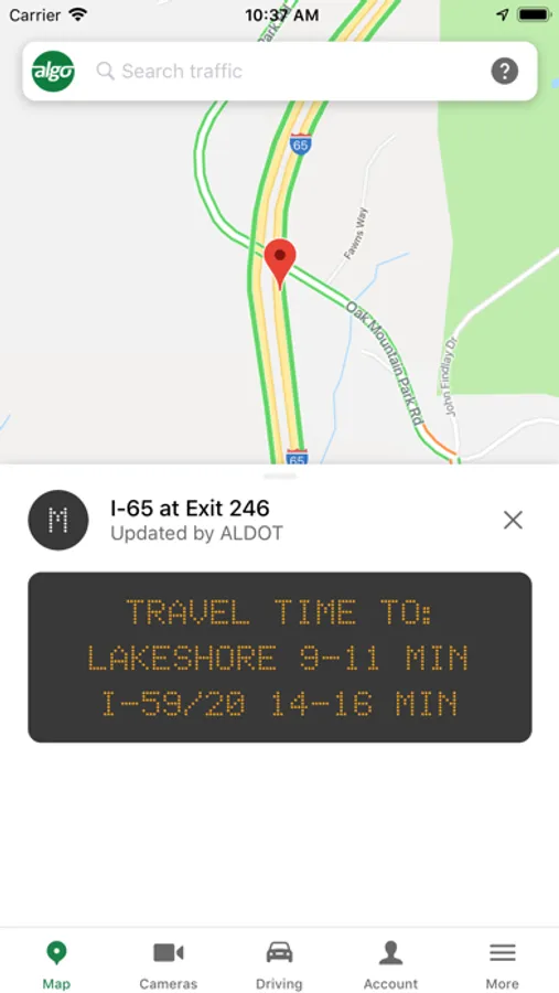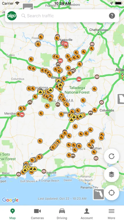 ALGO Traffic provides live traffic camera feeds, updates on Alabama roads, and access to exclusive ALDOT information such as message sign readouts, incident and construction information, and current road congestion levels.