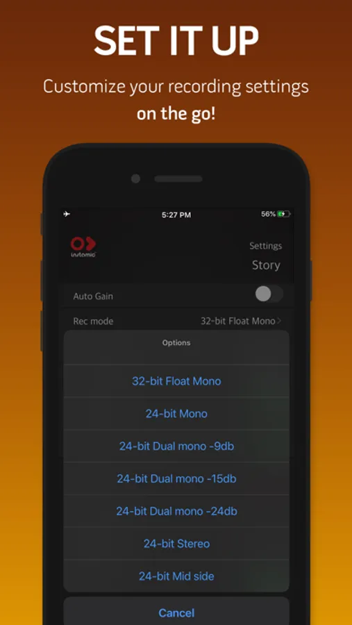 Input Mode: 32-bit Float Mono (Instamic Pro Plus), 24-bit Mono, 24-bit Dual-Mono (Instamic Basic, Pro Mono and Stereo), 24-bit Stereo, M/S (Instamic Pro Stereo).