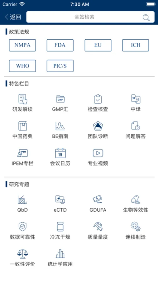 • 24小时同步更新国内(国家局、相关部委、主要省局等)和全球(FDA、EU、WHO、PIC/S、ICH等)监管和技术动态